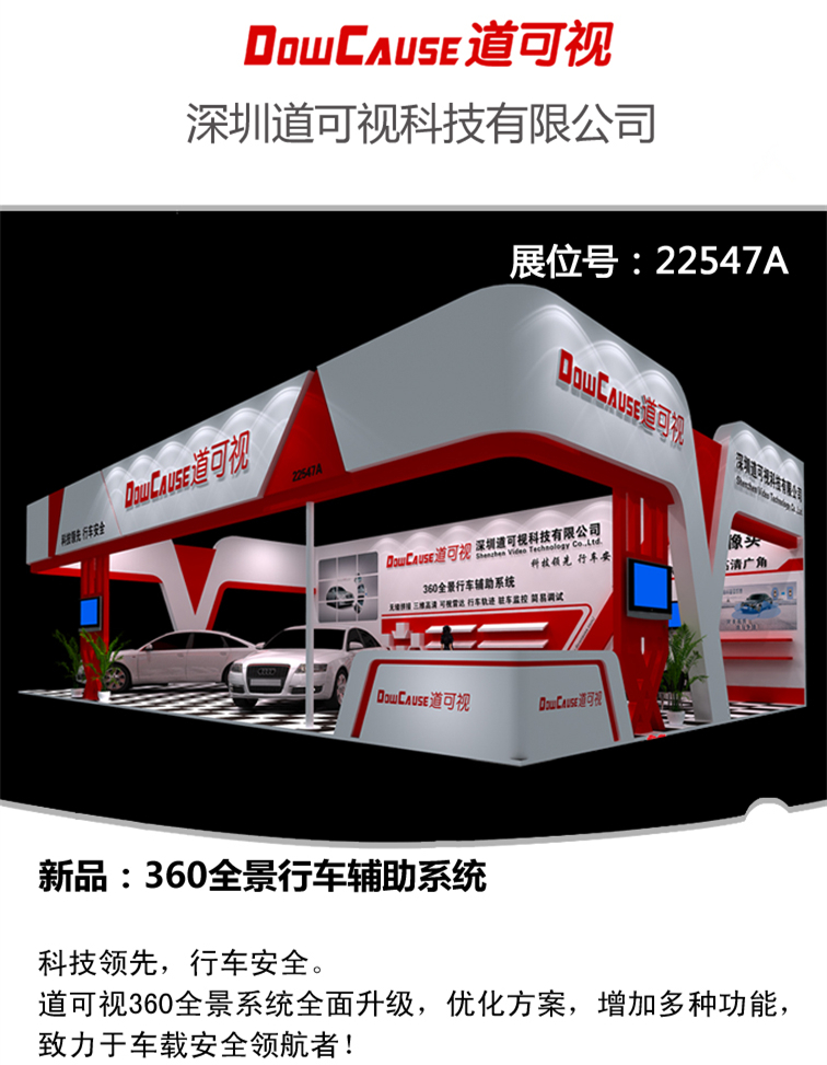 2015年1月16日,第十一屆深圳國(guó)際汽車改裝服務(wù)業(yè)展覽會(huì)盛大開幕,迎來(lái)了國(guó)內(nèi)各地的參展商和采購(gòu)商。深圳道可視科技有限公司精心準(zhǔn)備的各種展品在展會(huì)現(xiàn)場(chǎng)獲得了市民以及采購(gòu)商的一致好評(píng)。特別是我們的360度全景泊車影像系統(tǒng)備受關(guān)注,受到了各界人士的駐足。這一次我們主要的展品有360度全景泊車影像系統(tǒng)、智能倒車軌跡、專車專用攝像頭。這三類展品是我們公司專門針對(duì)汽車電子行業(yè)設(shè)計(jì)生產(chǎn)的主打產(chǎn)品,不僅在國(guó)內(nèi)屬于獨(dú)創(chuàng),在國(guó)際上也是具有較強(qiáng)競(jìng)爭(zhēng)力。