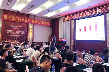 隨后,針對于大家所關(guān)注的“智慧聯(lián)盟店”,道可視大區(qū)經(jīng)理伍招權(quán)進行了重點介紹,他從市場體系、加盟方案、銷售模式和加盟優(yōu)勢四個維度進行了詳細(xì)宣講,引起現(xiàn)場終端門店的極大興趣。