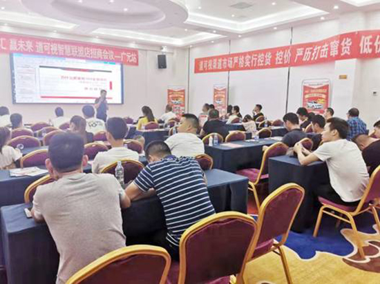會議尾聲,道可視運(yùn)營商彭總再次上臺,針對合同簽訂現(xiàn)場加盟做了簡短講解,他堅(jiān)信最終將達(dá)成智慧聯(lián)盟店4000家的小目標(biāo)。