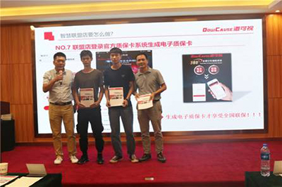 在隨后,廣州麗影豪車匯道可視項目負(fù)責(zé)人粟庚泉也上臺進(jìn)一步表示,為了降低門店銷售門檻,同時也給消費者帶來更專業(yè)的安裝服務(wù),將由當(dāng)?shù)爻鞘羞\營商對產(chǎn)品進(jìn)行安裝服務(wù),在智慧聯(lián)盟店內(nèi)完成安裝。而當(dāng)銷售完成后,聯(lián)盟店登陸官方質(zhì)保卡系統(tǒng)生成電子質(zhì)???/span>,輕松享受全國聯(lián)保。